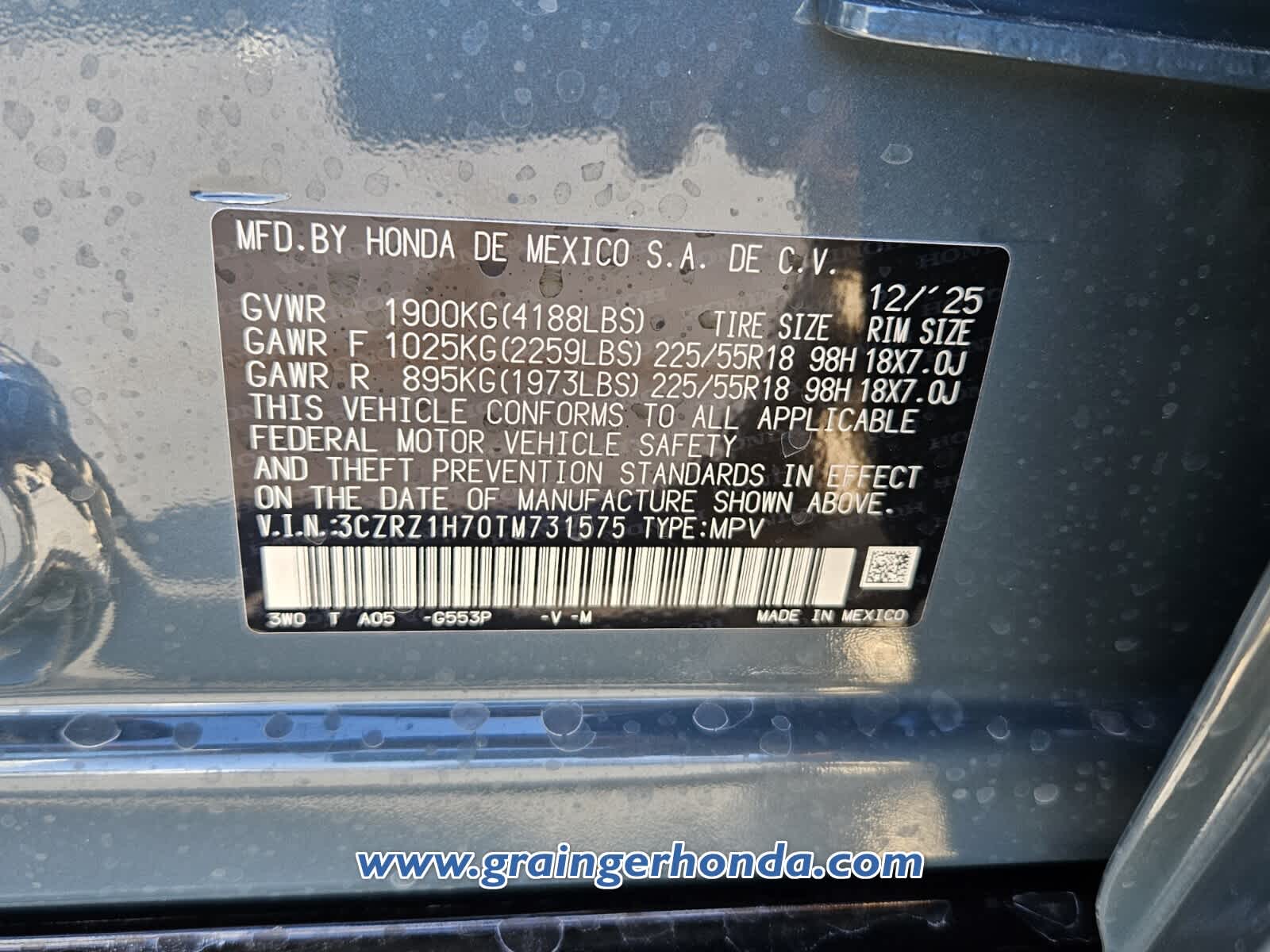 - Vehicle Name: Honda HR-V