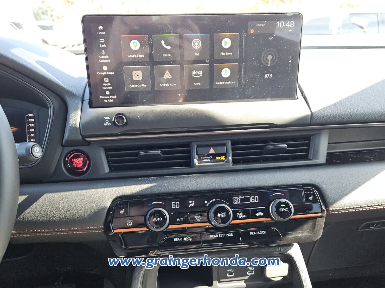 Third Row Seat, Navigation, Moonroof. Rear Spoiler, MP3 Player, All Wheel Drive, Onboard Communications System, Aluminum Wheels, Remote Trunk Release, Privacy Glass. Honda TrailSport with Smoke Blue Pearl exterior and Black w/ Orange Stitching interior features a V6 Cylinder Engine with 285 HP at 6100 RPM*.
