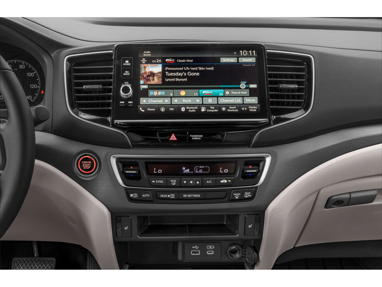 - Radio: 215-Watt Audio System w/7 Speakers -inc: subwoofer, 9" color touchscreen, Bluetooth® streaming audio, Speed-Sensitive Volume Compensation (SVC), wireless Apple CarPlay/Android Auto compatibility and 2.5A USB-A data port in front console, HondaLink, Select HondaLink features are complimentary, 36-month complimentary trials are available for security and remote packages, A subscription is required to continue HondaLink services after the trial ends