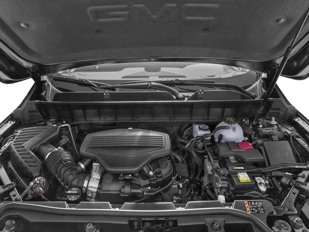 SUNROOF, DUAL SKYSCAPE 2-PANEL POWER with tilt-sliding front and fixed rear with sunscreen, TECHNOLOGY PACKAGE includes (UVH) Surround Vision System, (KSG) adaptive cruise control and (UGN) Forward Automatic Braking, AUDIO SYSTEM, 8 DIAGONAL COLOR TOUCH SCREEN NAVIGATION WITH GMC INFOTAINMENT SYSTEM, AM/FM/SIRIUSXM USB ports, auxiliary jack, Bluetooth® streaming audio for music and most phones, advanced phone integration featuring Apple CarPlay®, Android Auto® and voice-activated technology for radio and phone (STD), ENGINE, 3.6L V6, SIDI, DOHC with Variable Valve Timing (VVT) (310 hp [231.1 kW] @ 6600 rpm, 271 lb-ft of torque @ 5000 rpm [365.9 N-m]) (STD), TRANSMISSION, 6-SPEED AUTOMATIC (STD). GMC Denali with Ebony Twilight Metallic exterior and Jet Black interior features a V6 Cylinder Engine with 310 HP at 6600 RPM*.