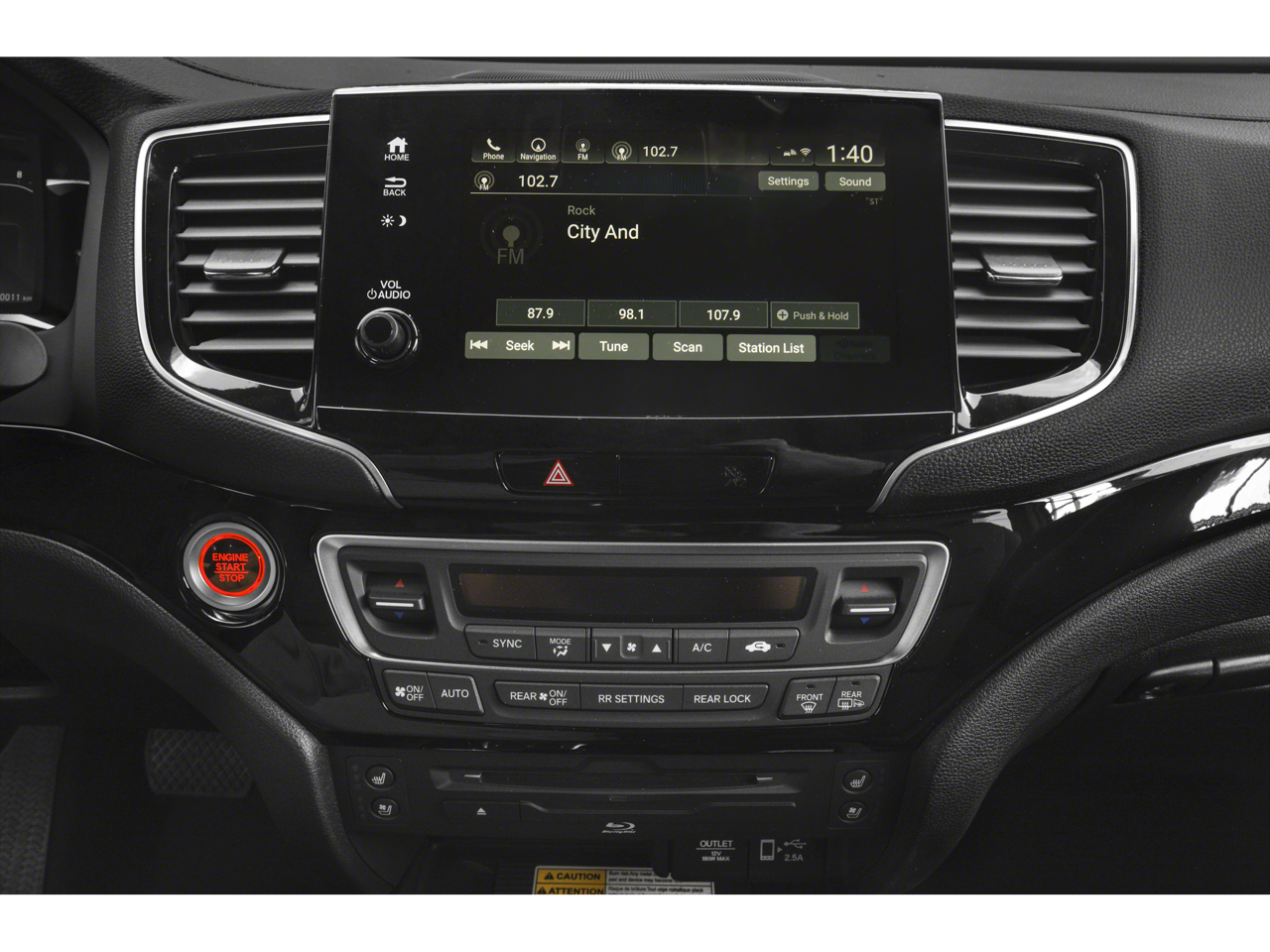 - Radio: 590-Watt Premium Audio System -inc: 10 speakers, subwoofer, 8" display audio w/high-resolution electrostatic touch-screen and customizable feature settings, 2.5-amp USB smartphone/audio interface front console (1 port), Bluetooth® HandsFreeLink, Bluetooth® streaming audio, MP3/auxiliary input jack, Radio Data System (RDS), Speed-Sensitive Volume Compensation (SVC), 2.5-amp USB charging port in center console (1 port) and 2nd row (2 ports), HondaLink, CabinControl remote compatibility, Apple CarPlay integration, Android Auto integration, SMS text message function (Compatible w/select phones w/Bluetooth®, Your wireless carrier's rate plans apply, State or local laws may limit use of texting feature, Only use texting feature when conditions allow you to do so safely.), SiriusXM radio (SiriusXM services require a subscription after any trial period, If you decide to continue your SiriusXM service at the end of your trial subscription, the plan you choose will automatically renew and bill at then-current rates until you call SiriusXM at 1-866-635-2349 to cancel, See our customer agreement for complete terms at www.siriusxm.com, Fees and programming subject to change, XM satellite service is available only to those at least 18 years and older in the 48 contiguous United States and D.C, 2019 Sirius XMRadio Inc, Sirius, XM and all related marks and logos are trademarks of SiriusXM Radio Inc.), HD Radio, CabinTalk in-car PA system through speakers and headphones, HondaLink subscription services (HondaLink subscription services come w/complimentary trials of security for 1 year and a remote/concierge trial for 3 months, Enrollment is required to access the remote/concierge trial and to access certain features of security, At the end of each trial period, purchase of a subscription is required to continue the respective services.), Wi-Fi hotspot capability (Requires AT&T data plan.) and multi-zone audio