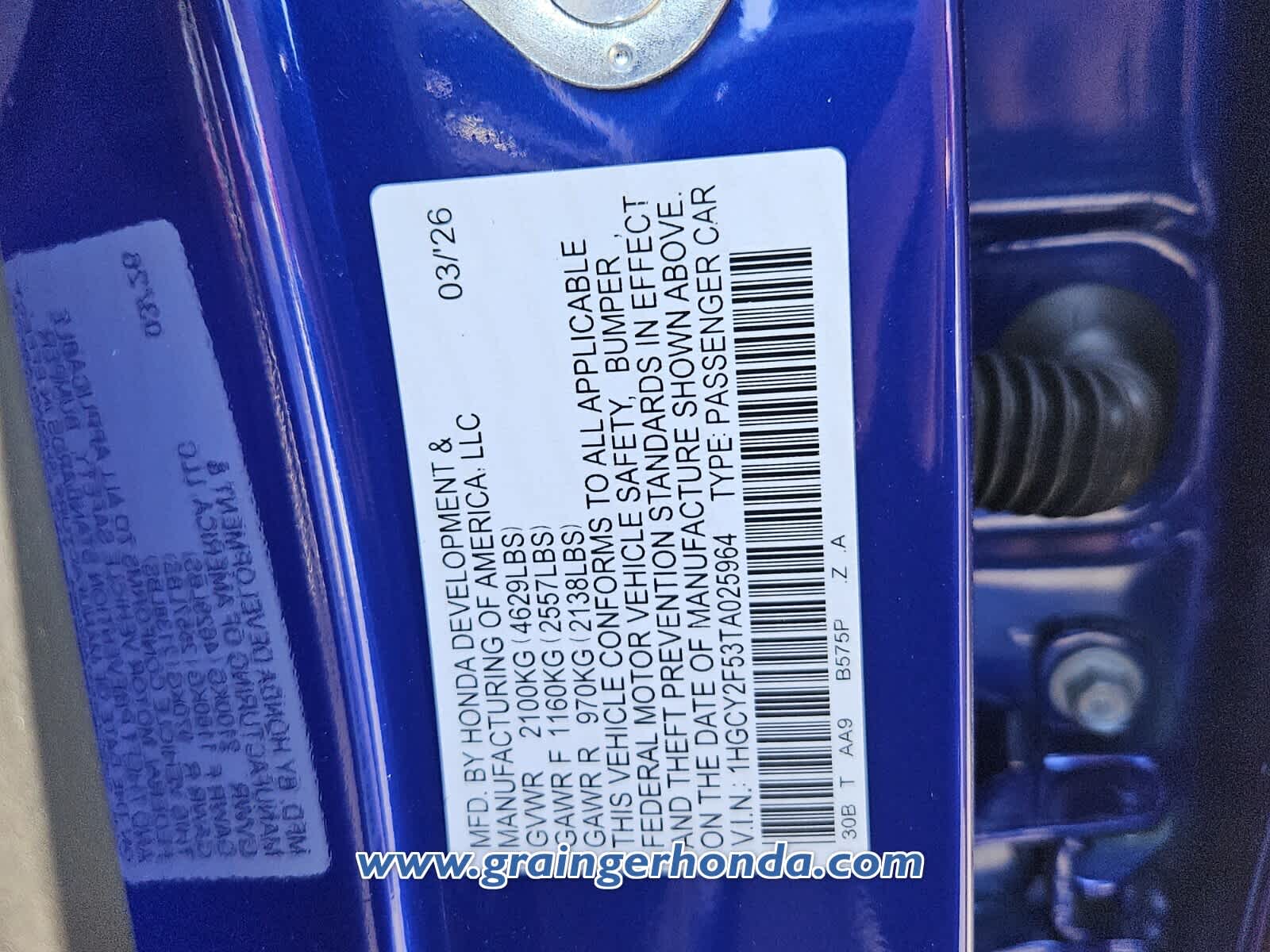 VIN 1HGCY2F53TA025964