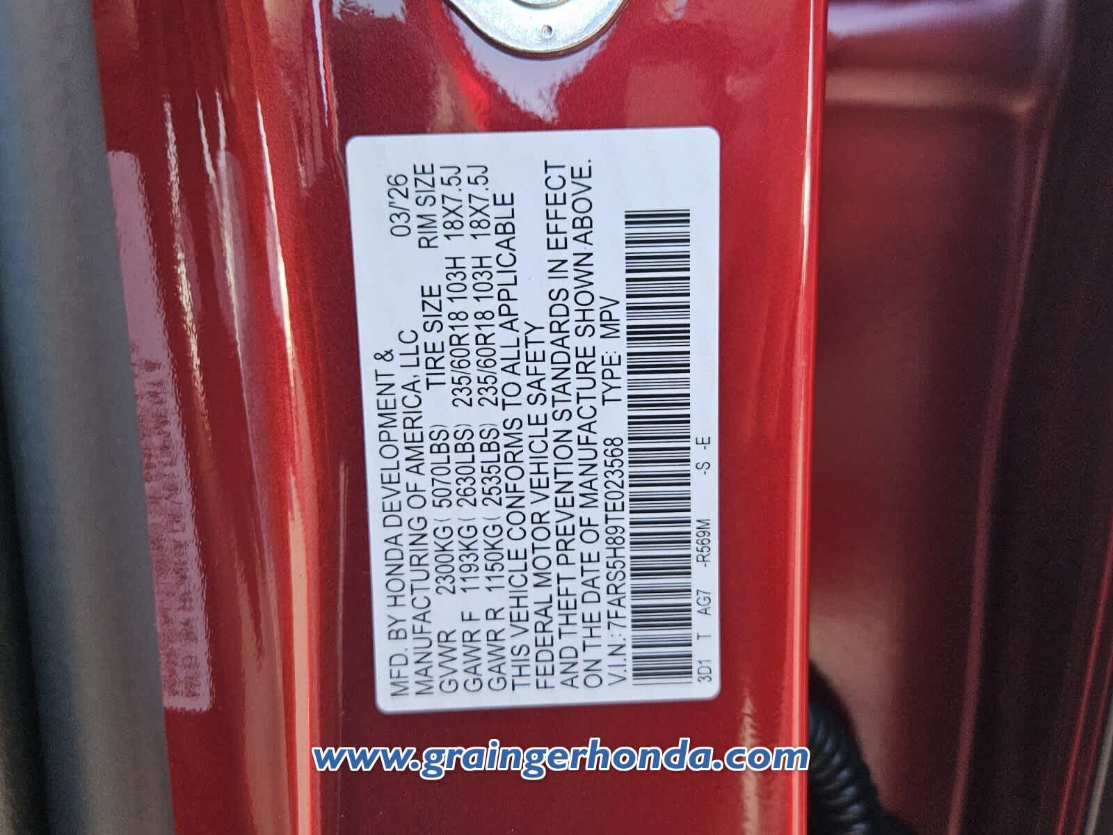 VIN 7FARS5H89TE023568