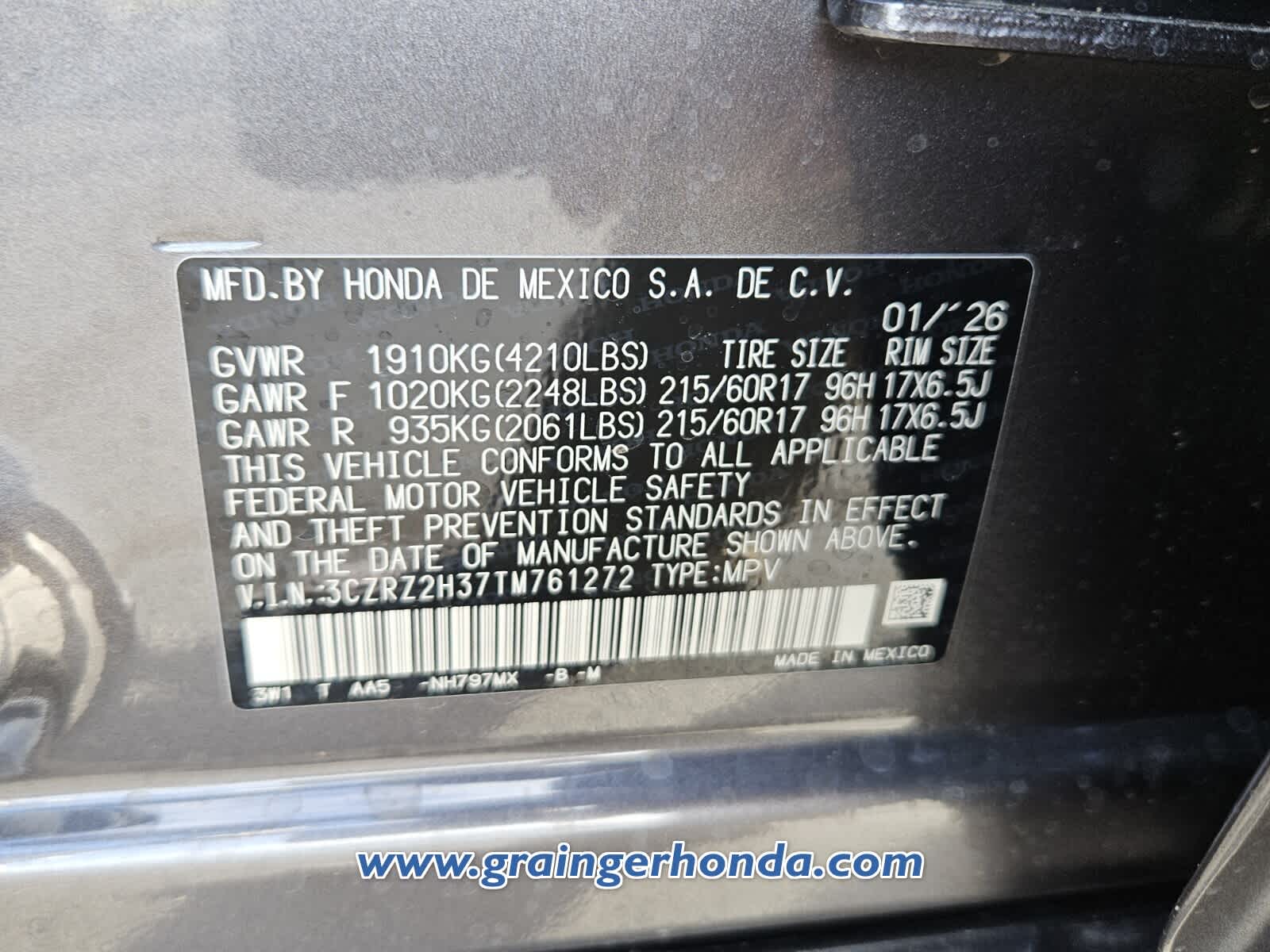 VIN 3CZRZ2H37TM761272