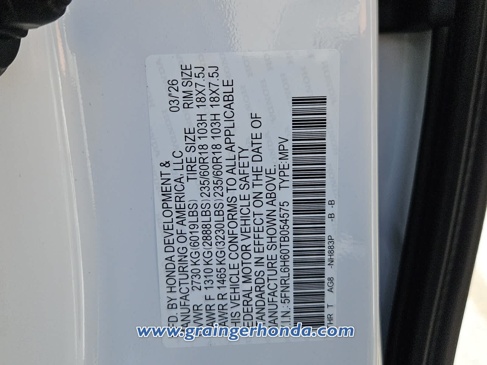 VIN 5FNRL6H60TB054575