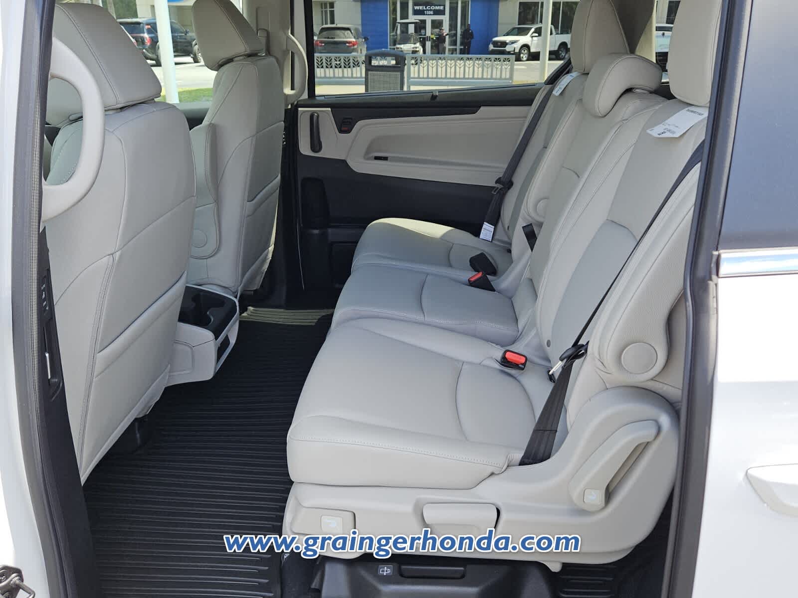 Leather Seats, Third Row Seat, Moonroof. Rear Spoiler, MP3 Player, Power Third Passenger Door, Aluminum Wheels, Remote Trunk Release, Privacy Glass, Keyless Entry. Honda EX-L with Platinum White Pearl exterior and Gray interior features a V6 Cylinder Engine with 280 HP at 6000 RPM*.