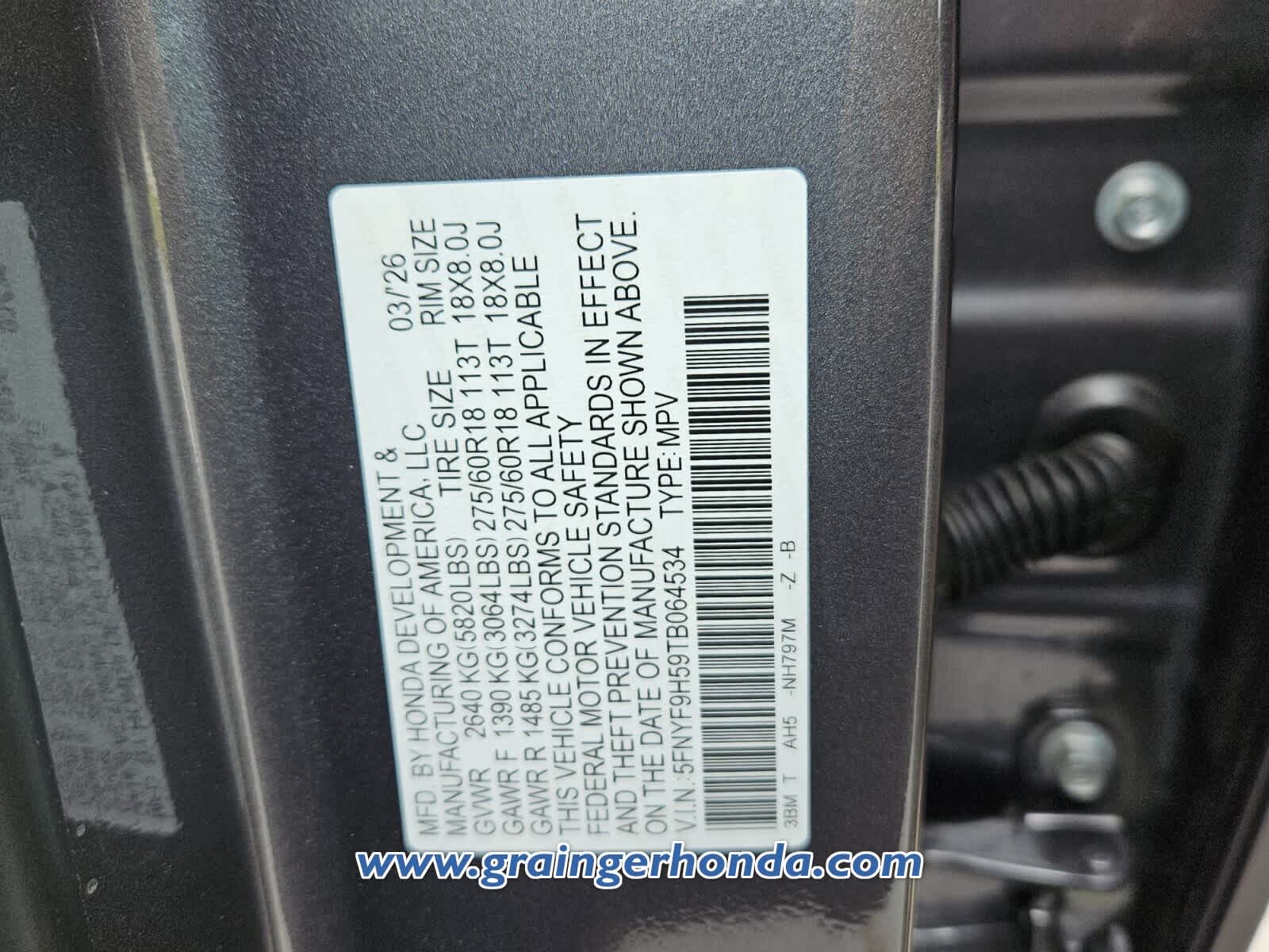 VIN 5FNYF9H59TB064534