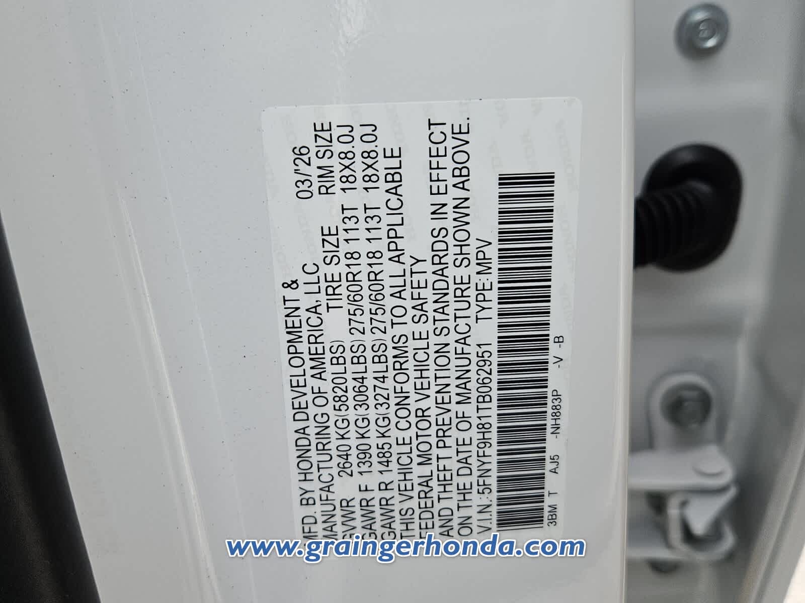 VIN 5FNYF9H81TB062951