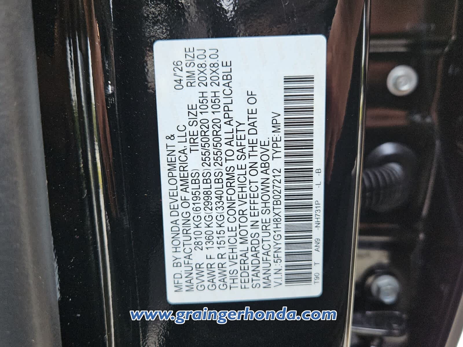 VIN 5FNYG1H8XTB027212