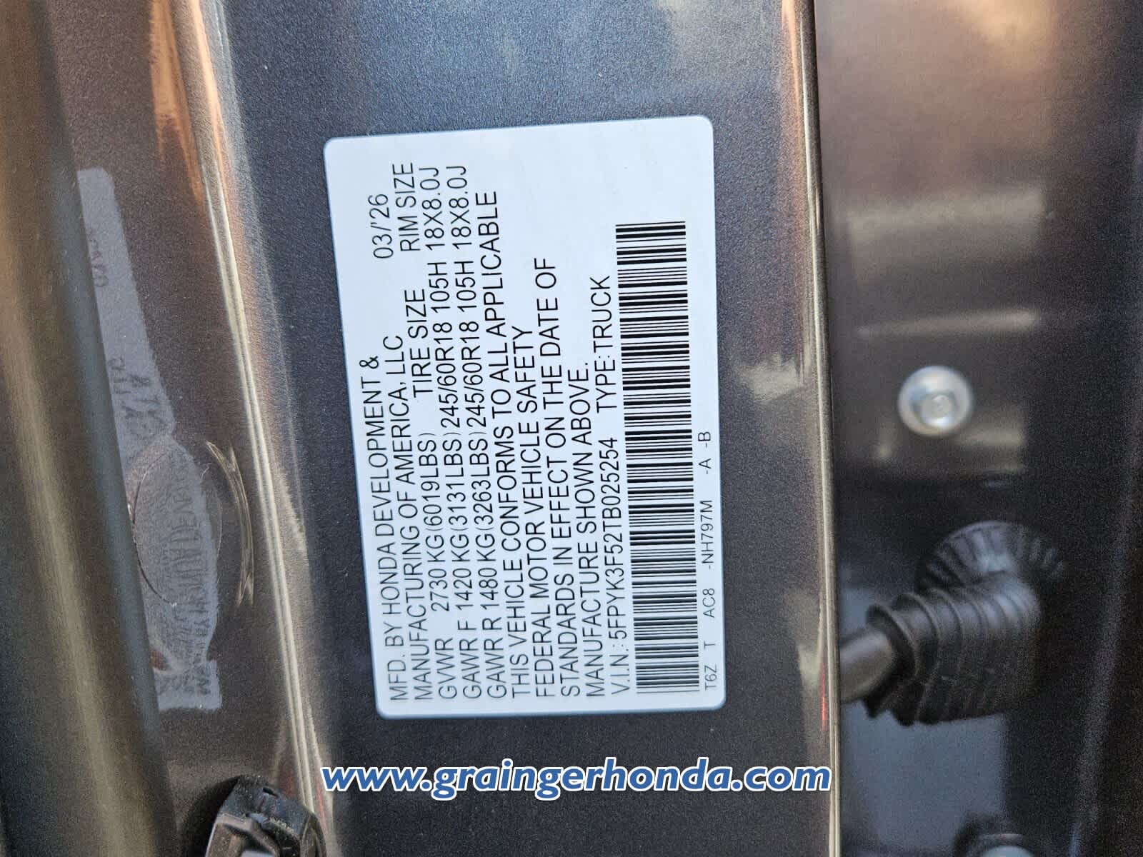 VIN 5FPYK3F52TB025254