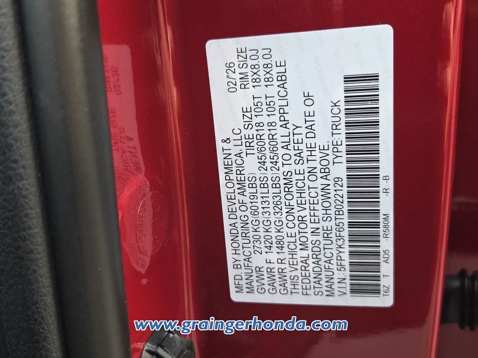 VIN 5FPYK3F65TB022129