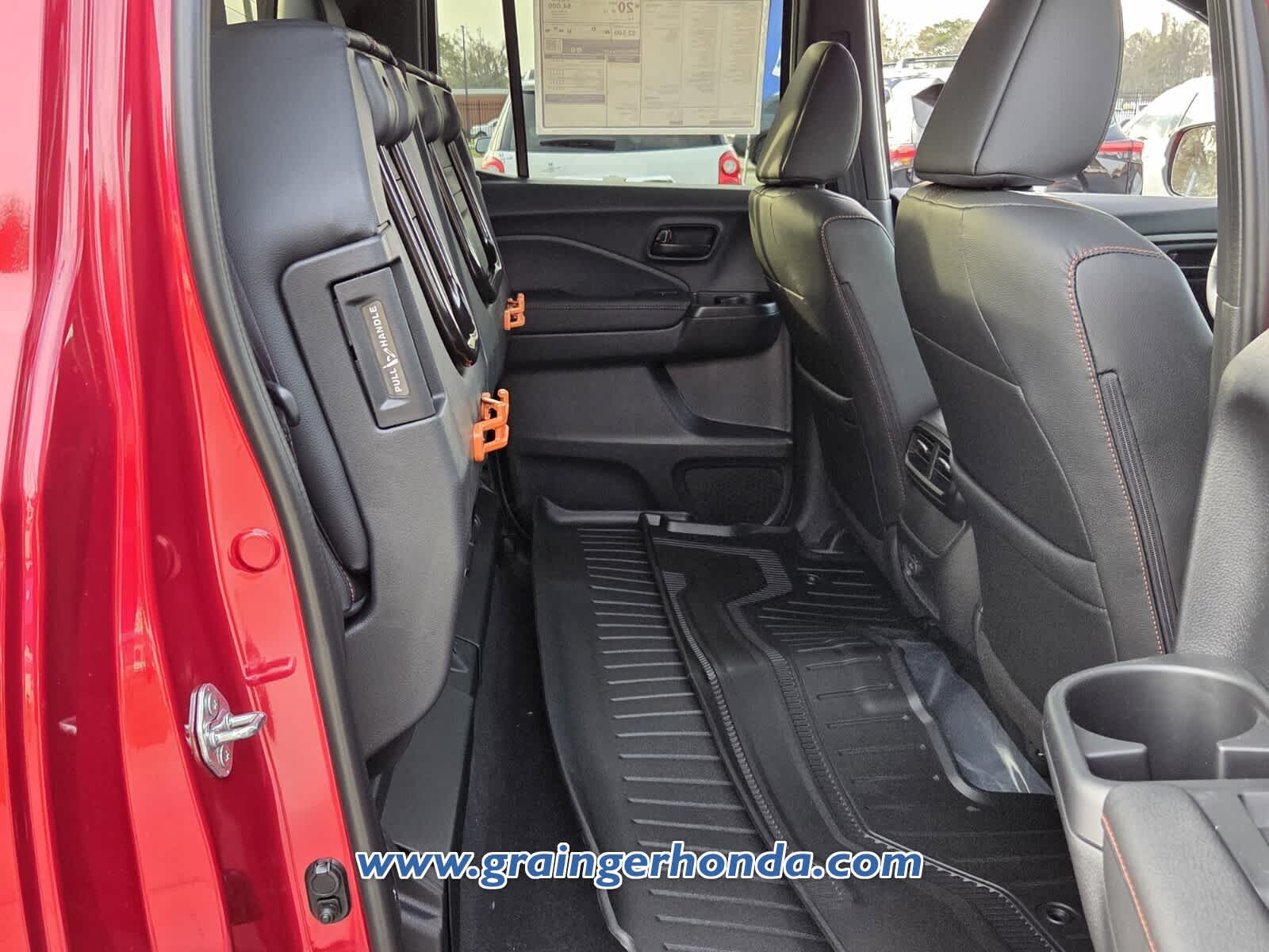Leather Seats, Navigation, Moonroof MP3 Player, All Wheel Drive, Onboard Communications System, Aluminum Wheels, Keyless Entry, Privacy Glass, Steering Wheel Controls. Honda TrailSport with Radiant Red Metallic II exterior and Black w/ Orange Stitching interior features a V6 Cylinder Engine with 280 HP at 6000 RPM*.