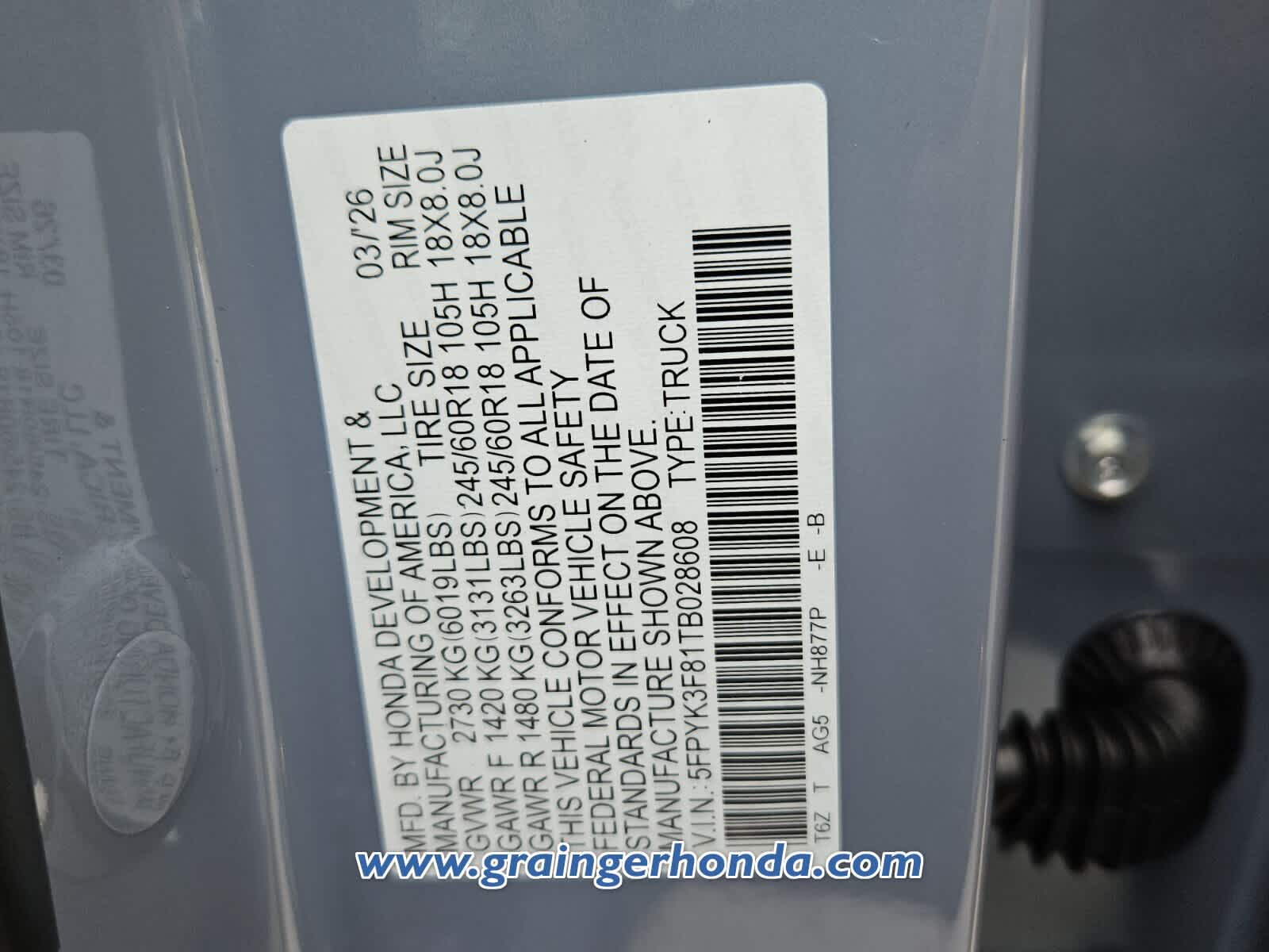 VIN 5FPYK3F81TB028608