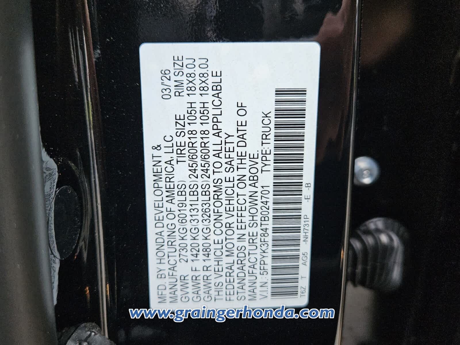 VIN 5FPYK3F84TB024701