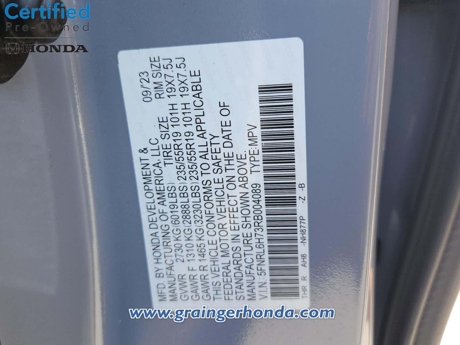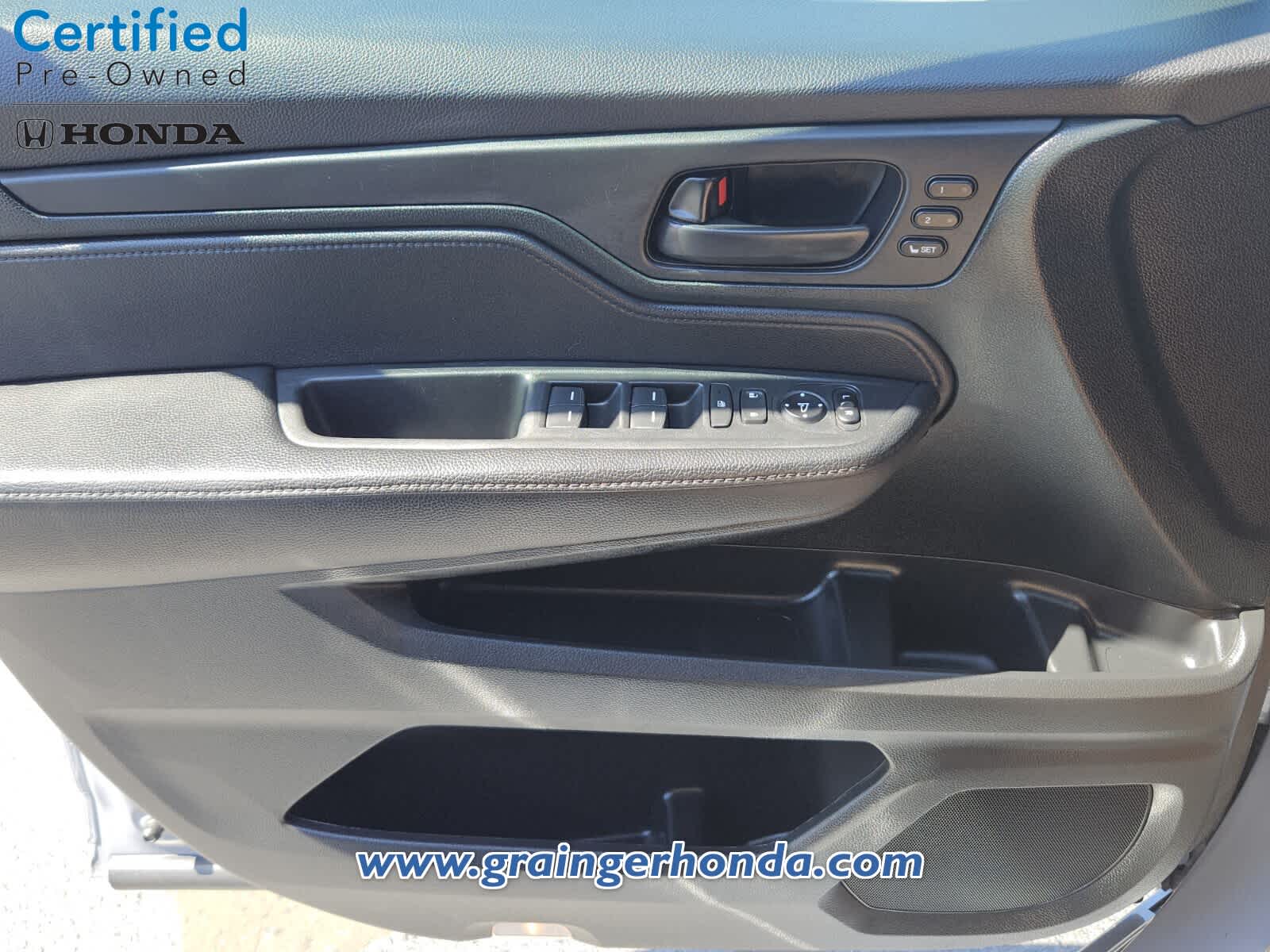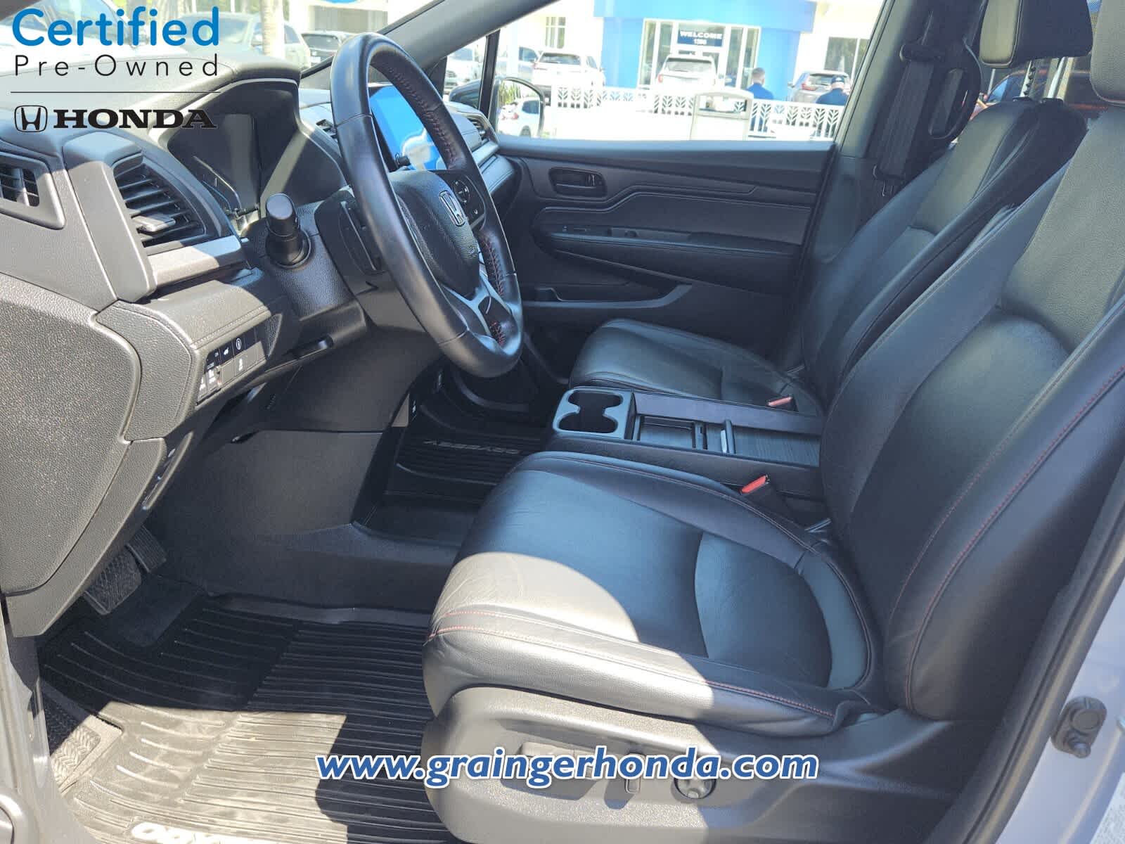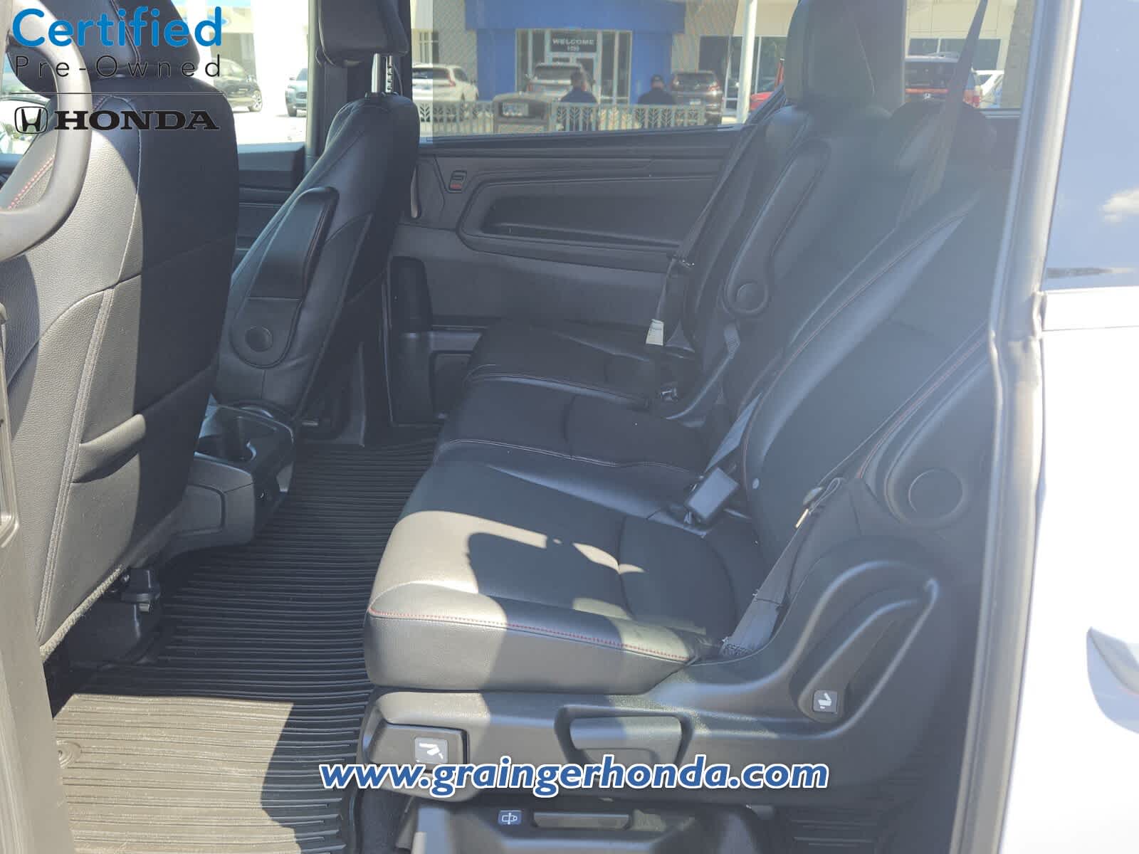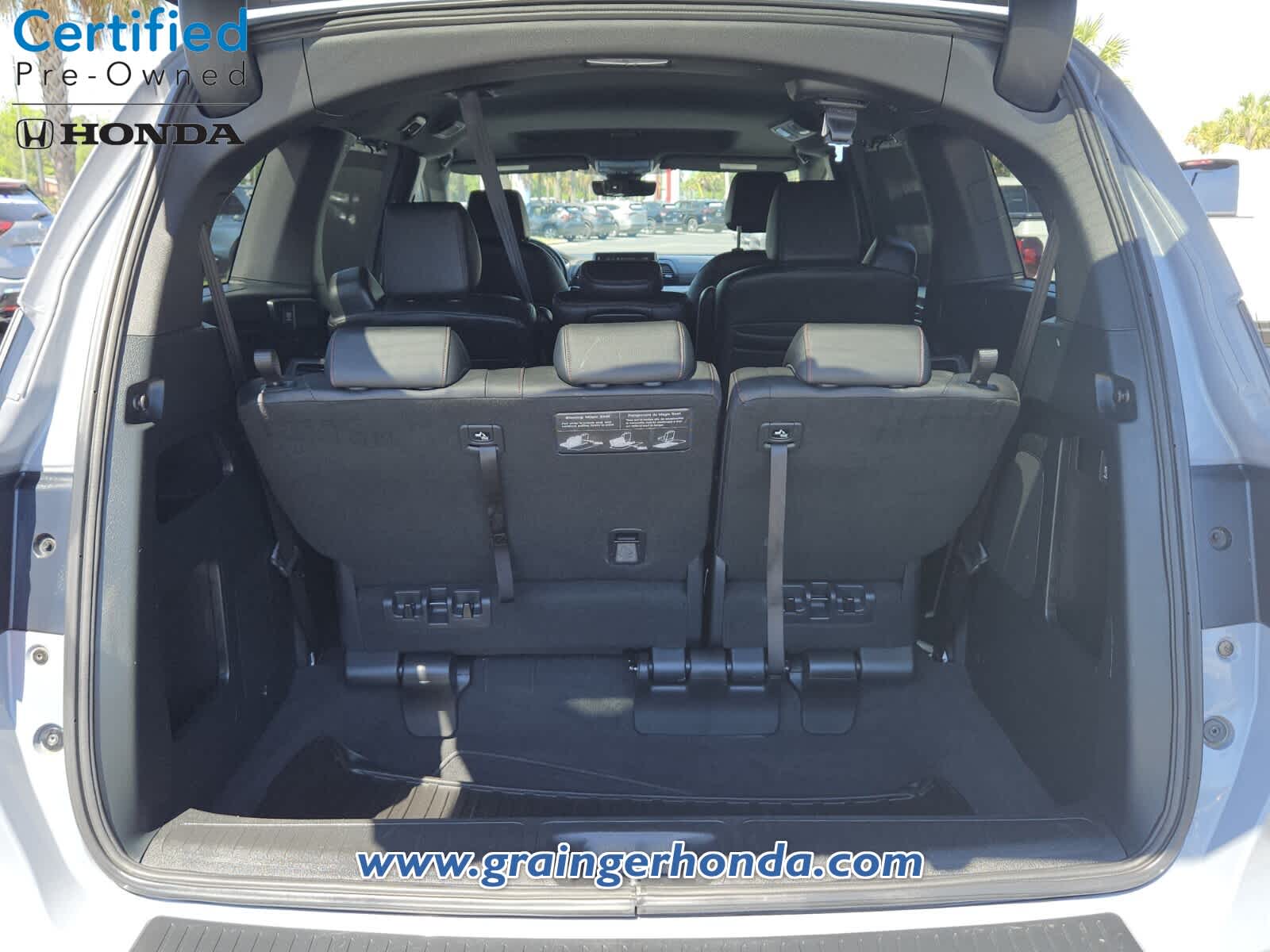Leather Seats, Third Row Seat, Moonroof. Rear Spoiler, MP3 Player, Power Third Passenger Door, Aluminum Wheels, Remote Trunk Release, Privacy Glass, Keyless Entry. Honda Sport with Sonic Gray Pearl exterior and Black interior features a V6 Cylinder Engine with 280 HP at 6000 RPM*.
